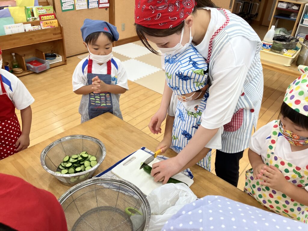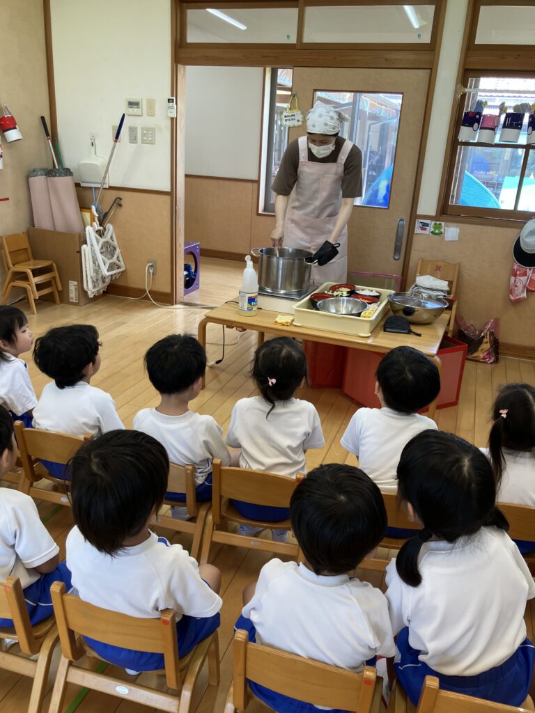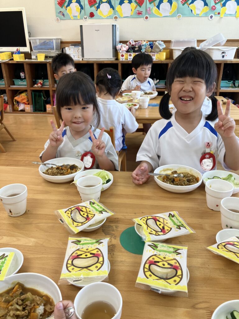 日頃は食べるのに時間がかかってしまう子や小食な子達もたくさん食べてくれていたので良かったです。食育効果は抜群♪これからも子どもたちが楽しく出来る食育を考えておこなっていきたいと思います。