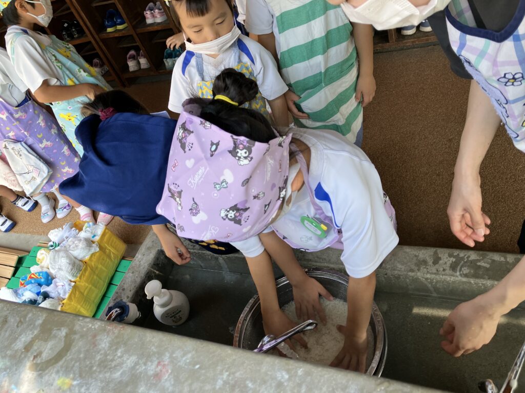 お米を洗って、